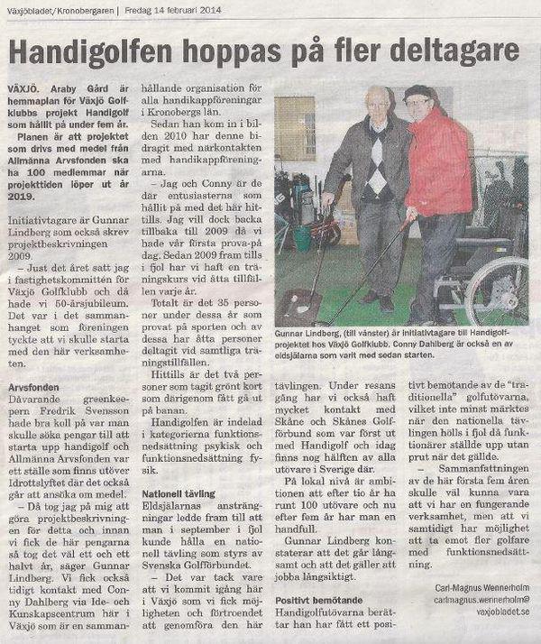 Nu är det hög tid att marknadsföra sina Handigolf aktiviter. Växjö GK har fått med en tidningsartikel i lokaltidningen