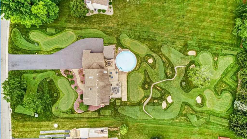 Någon av de tidigare ägarna har byggt en egen pitch-and-play-bana runt hela huset.