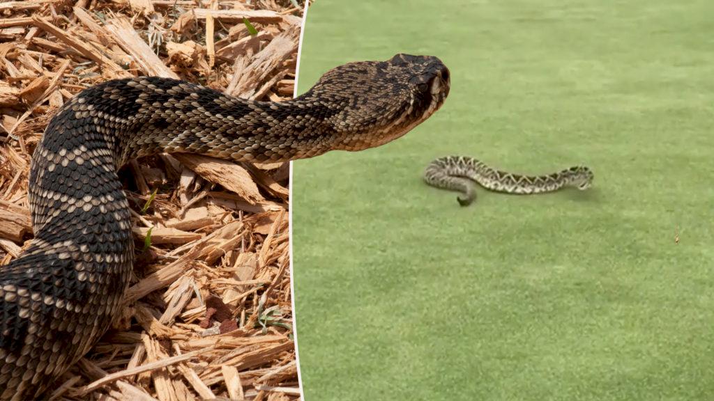 På en golfbana i Florida fick ett gäng golfare en ringlande gäst på en av greenerna.