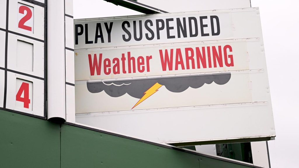 Prognosen är åska och ihållande regn, vilket kan innebära att The Masters behöver avslutas på måndag.