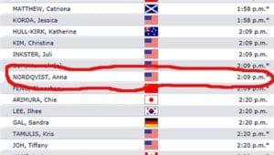När bloggen var fram till USGA:s representanter i mediacentret och undrade om Anna Nordqvist blivit amerikanska så gick de in och ändrade flaggan intill hennes namn på leaderboarden.Men då blev Anna Nordqvist helt plötsligt – norska…Nu har bloggen varit framme och upplyst om flaggan igen.Vad blir Annas nästa tillhörighet?Schweiz kanske…