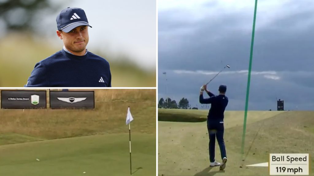 Ludvig Åberg hade otur när han träffade Collin Morikawas boll men stod för ett bra öppningsvarv.