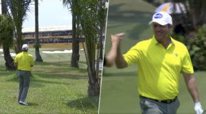 Robert Karlsson lyckades göra eagle-eagle under rondens avslutning. Se TV-intervjun från Viasat Golf där frågorna ställs på engelska men svaren kommer på svenska.