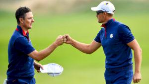 Henrik Stenson och Justin Rose kom till uppvärmningen med identiska kläder.