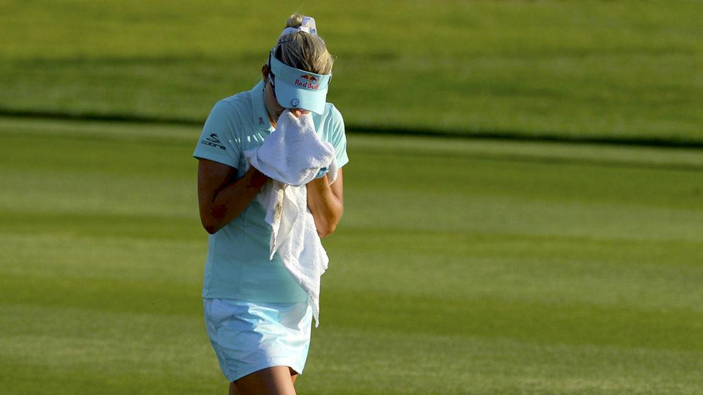 På grund av ett mistag på det 17:e hålet under lördagsrundan fick Lexi Thompson två pliktslag under den avslutande rundan – efter elva spelade hål.