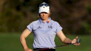 Annika Sörenstam balanserar på kvalgränsen efter sin andra rond på Lake Nona. Tävlingen pågår.