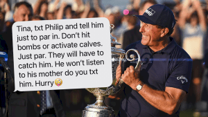 Det här hade Phil Mickelson i bagen första tre varven, och den här klubban ersatte den trasiga järnettan på söndagen.