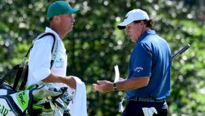 Phil Mickelson har för första gången på 25 år inte Jim "Bones" Mackay på bagen. Men resultatet var ändå stabilt.