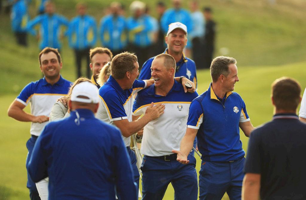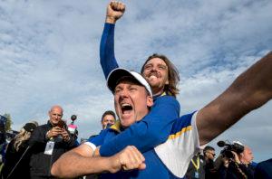 Ian Poulter firade Ryder Cup-segern med sonen Luke.