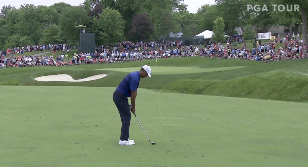 Woods bjöd på dagens läckraste slag på det 11:e hålet. Se slaget och fler höjdpunkter The Memorial Tournament här.