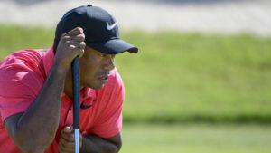 Tiger Woods var ytterst nära hole-in-one på hål 16.